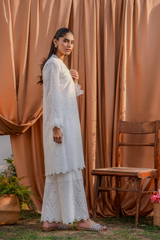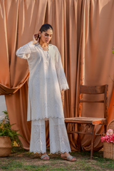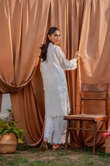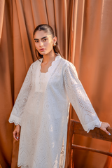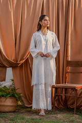 Introducing Bano, MM's absolutely dreamy white chikan matching separates, perfect for this Ramadan and Eid! Features scalloped edges and pearl detailing.
