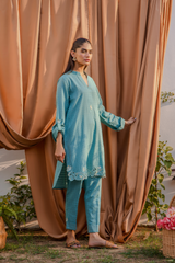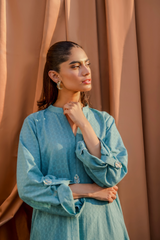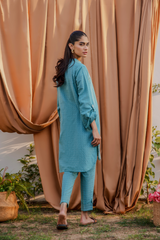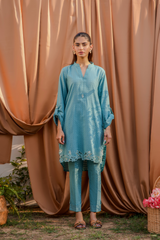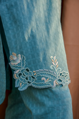 Sage green textured cotton matching separates featuring signature MM embroidery and cut work. A must have this Ramadan/ Eid!