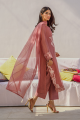 Naya, meaning new and fresh is one of our first all teracotta ensembles and we are all for it! The kameez features embroidery and detailed cutwork, paired with a matching dupatta and straight trousers for a complete and captivating look.