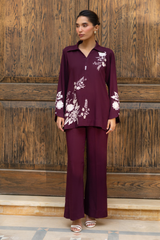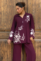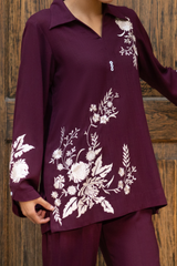 Matching set in breathable Irish cotton, featuring intric ate resham embroidery.